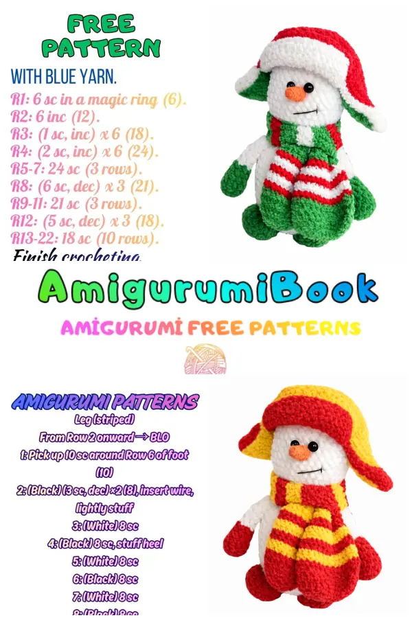 If you want to take your amigurumi snowman to the next level, this earflap hat and scarf set is the perfect finishing touch. Designed to match the snowman shown in the photos, this free crochet bonus pattern is easy to follow and works perfectly with plush yarn.