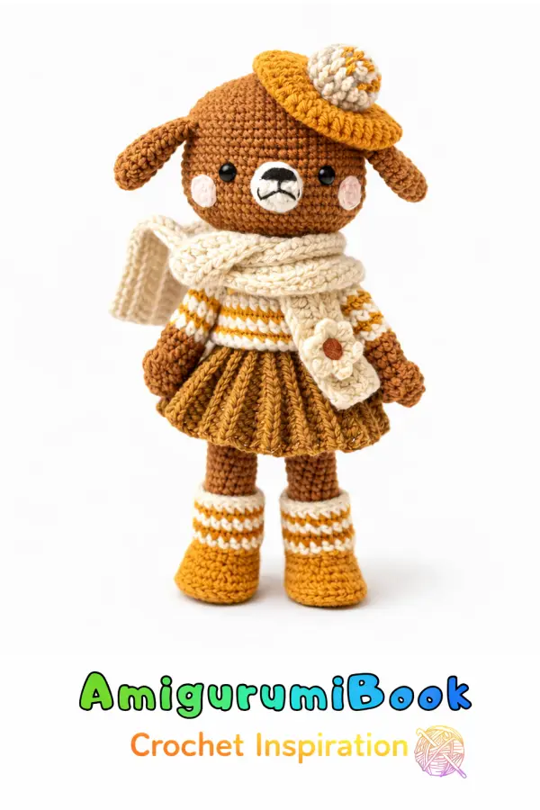 If you are looking for a free Madeleine Dog amigurumi crochet pattern, this charming design by Pica Pau is a perfect choice. Featuring a stylish beret, cozy scarf, pleated skirt, and adorable boots, this handmade doll is full of personality.