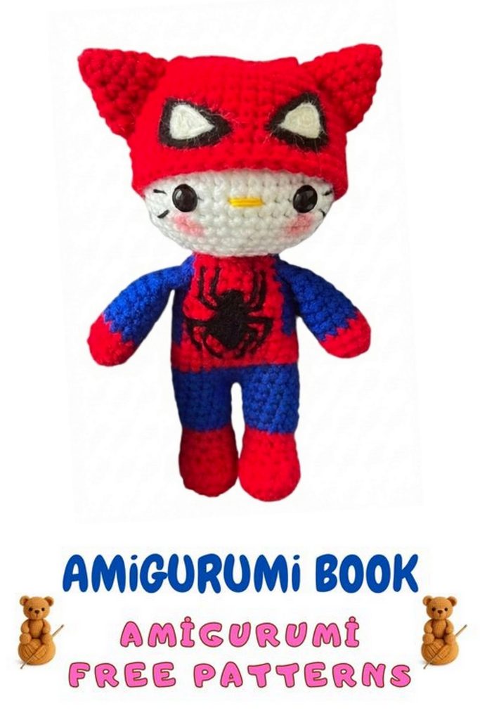 If you are searching for a fun and eye-catching cat amigurumi pattern, this Spider Cat amigurumi is a perfect choice for crochet lovers. Designed with a superhero theme, this adorable crochet cat features expressive details, colorful clothing, and a playful character that makes it stand out among classic amigurumi toys.